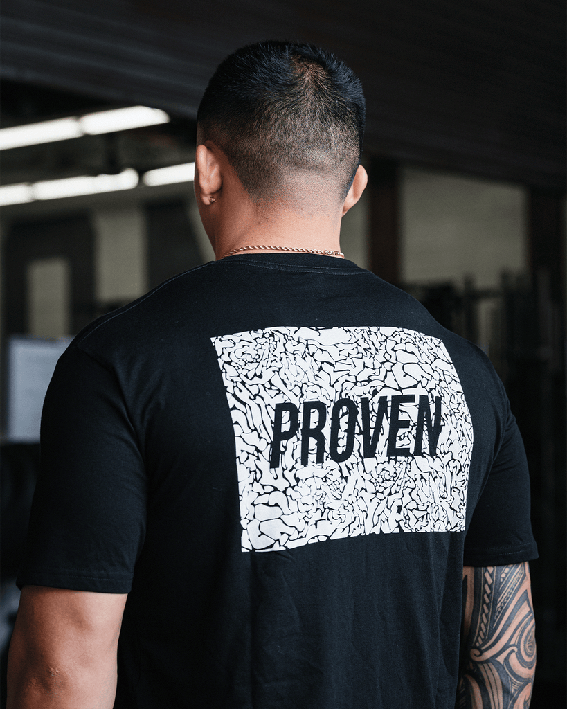This isn't your standard gym shirt. The wild graphic, scoop bottom, and hem tag, elevate your look from the street to the squat rack.